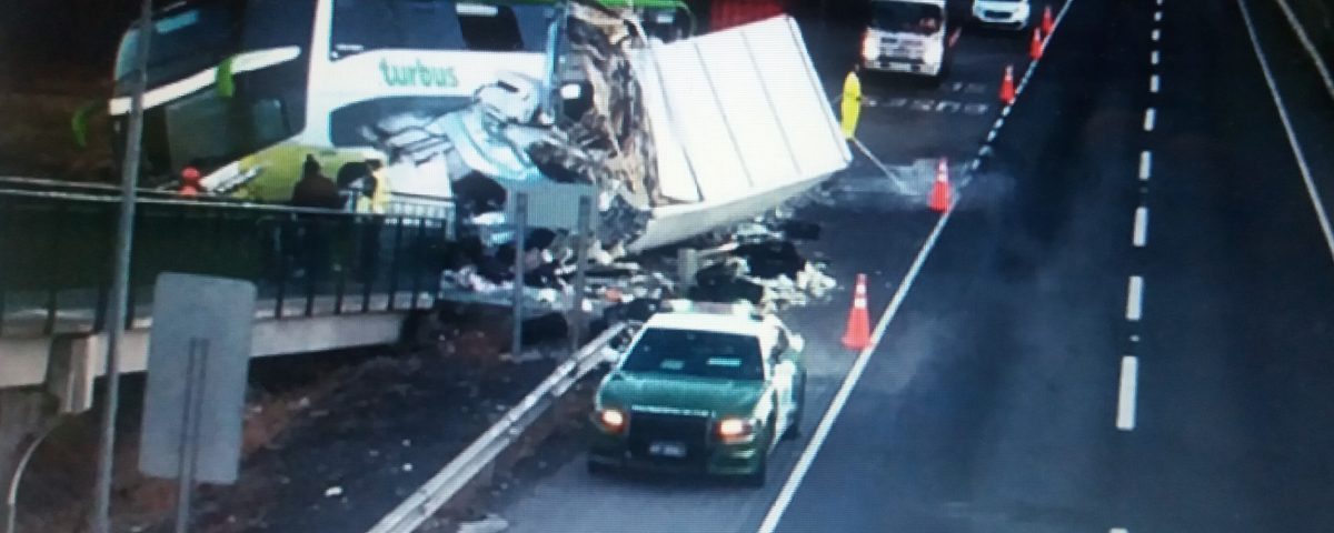 Un accidente de tránsito ocurrió a las 5.10 horas de la mañana entre un bus y un camión ¾ en el kilómetro 355 de la ruta 5 sur frente a la localidad de San Gregorio en Ñiquén.