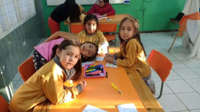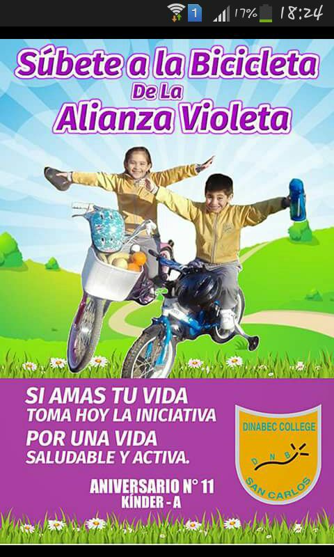 Por otro lado, la alianza Violeta, del Kínder A, tiene como candidatos a reyes a Alison Chandía y Mateo Fuentes con el slogan «Súbete a la bibicleta de la alianza violeta».