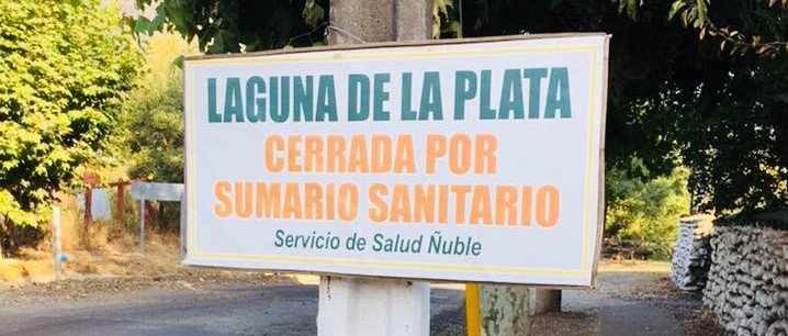 Carteles con la prohibición se encuentran en el Retén de Carabineros con la leyenda «Laguna de la Plata cerrada por sumario sanitario. Servicio de Salud Ñuble».
