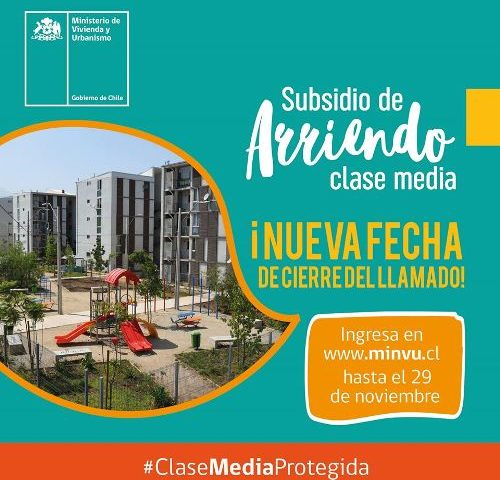 El acceso a la vivienda se sigue ampliando para las familias del país, luego de que el Ministerio de Vivienda y Urbanismo informara la extensión del plazo de postulación al subsidio de arriendo hasta el viernes 29 de noviembre.