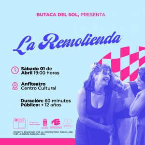 Scarlet Hidalgo Jara, Seremi de las Culturas, las Artes y el Patrimonio, y Gastón Suazo Soto, Alcalde de la comuna de San Carlos, tienen el agrado de invitarle a la presentación de uno de los clásicos del teatro chileno: LA REMOLIENDA, presentada por la compañía chillaneja Butaca de Sol, este sábado 01 de abril a las 19.00 horas en el anfiteatro del Centro Cultural.