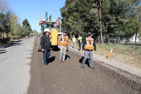 Hasta el sector arribó el seremi de Obras Públicas en Ñuble, Paulo De la Fuente Paredes, en compañía del director regional de Vialidad, Oliver Morales y el alcalde de San Carlos, Gastón Suazo, para revisar los avances de los trabajos que lleva a cabo la empresa Constructora Remfisc Ltda., por un plazo de 360 días.