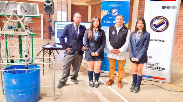 Asimismo, los estudiantes Catalina Carrere, Claudio Castillo y Fernanda Rubio, junto a su coach, el profesor Francisco Olate, participaron en un segundo certamen, denominado INFOMÁTRIX, realizado en San Carlos, el día 5 de septiembre pasado, en el cual el equipo del Liceo Politécnico alcanzó Nivel Plata en la Categoría “Ciencias Aplicadas”, con el proyecto tecnológico “bomba de soga”, alimentada por energía solar y control domótico, acreditando así su participación para INFOMÁTRIX Perú 2025 , en octubre de este año.